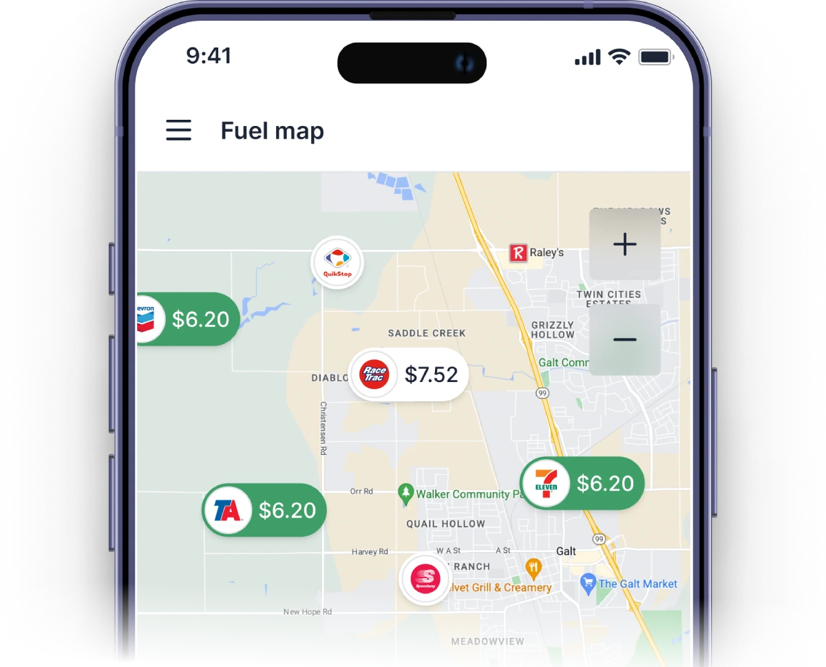 Access 30,000+ stations coast-to-coast, with high-flow diesel discounts averaging 45¢ off and up to $2.00 off per gallon.